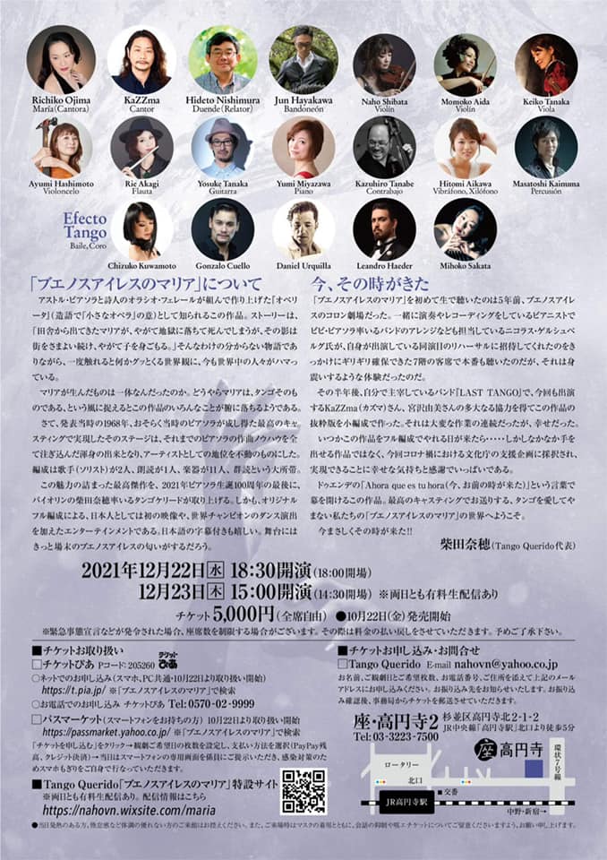 若き日のピアソラとフェレールの最高傑作が、オリジナルフル編成による演奏と、この作品では日本人初となる舞台演出で極上のエンターテイメントに。 ピアソラ生誕100周年のクリスマス、あなたに贈る一大叙事詩!!