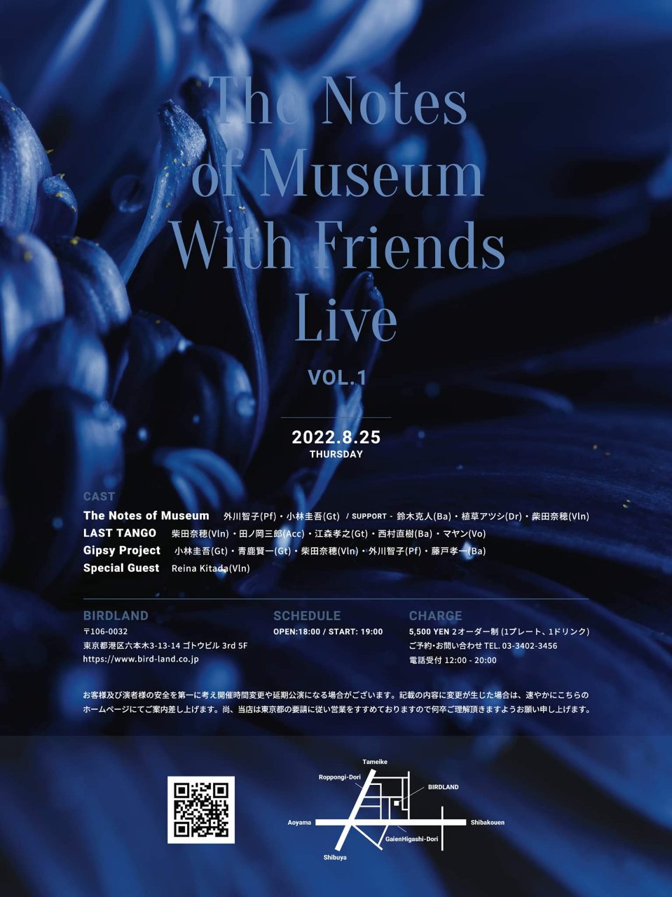 ●チャージ:5,500円 + 1ドリンク代 25名様限定