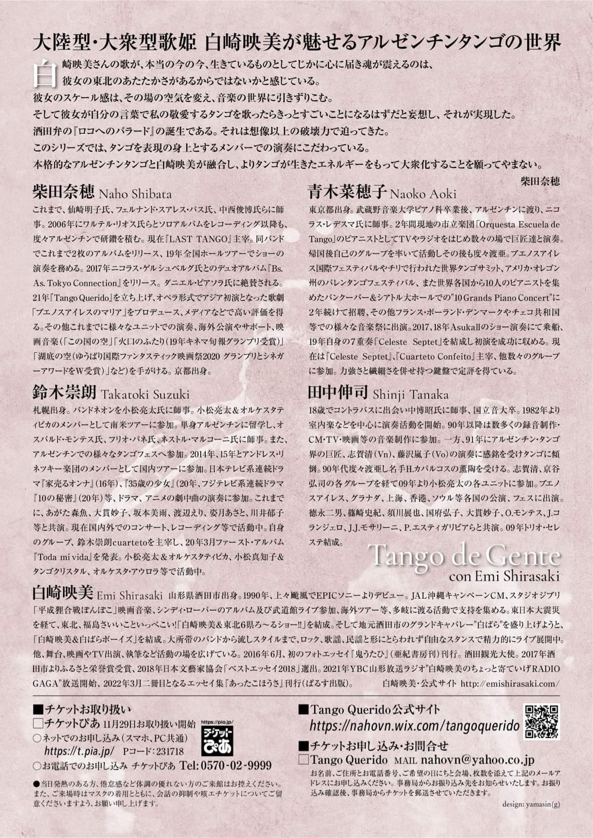 ご予約・お問い合わせ:Tango Querido [mail:nahovn@yahoo.co.jp / Tel:090-9717-3859]