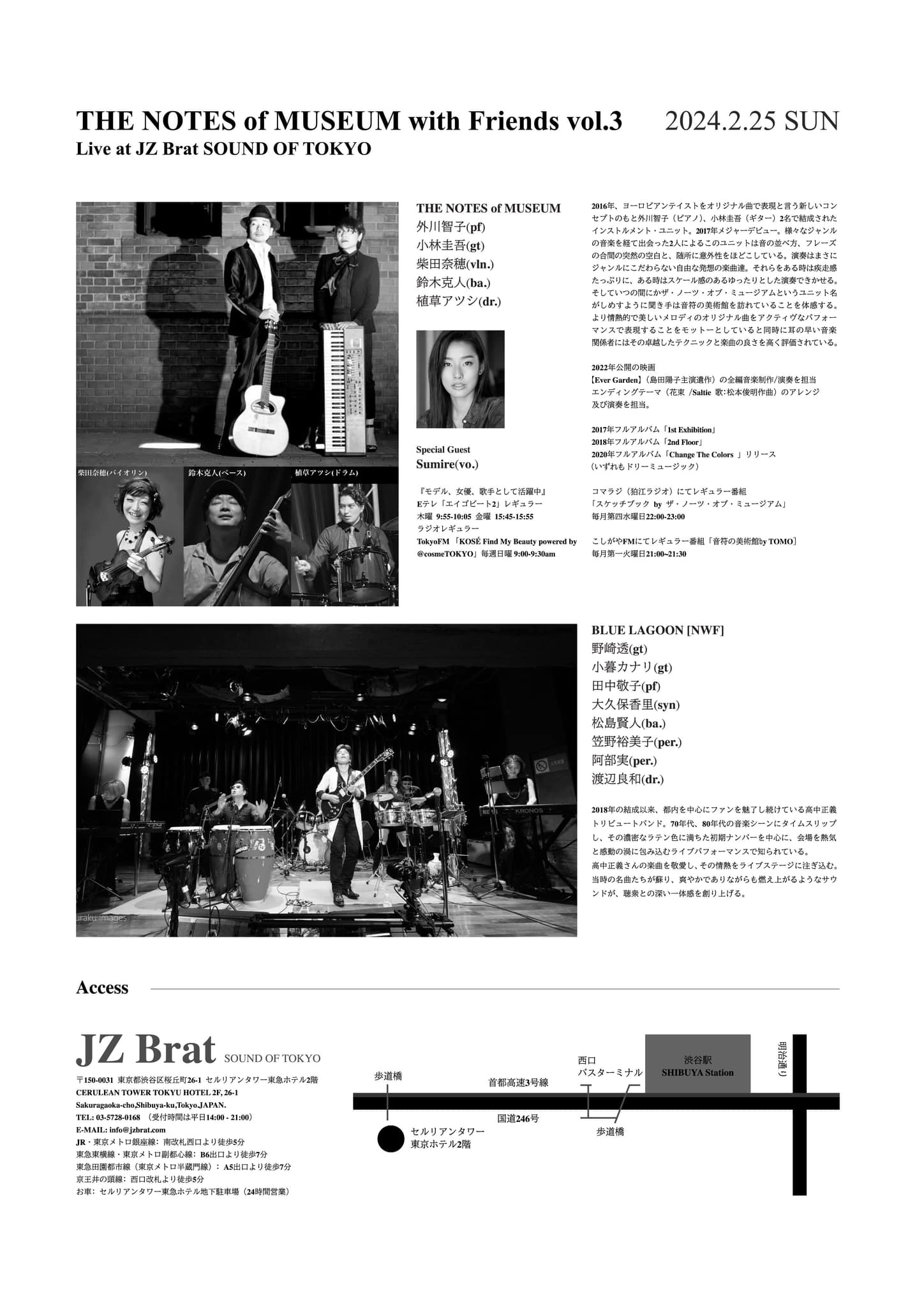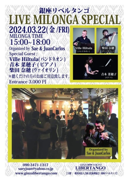 ●チャージ:3,500円(前売) 3,800円(当日) + オーダー