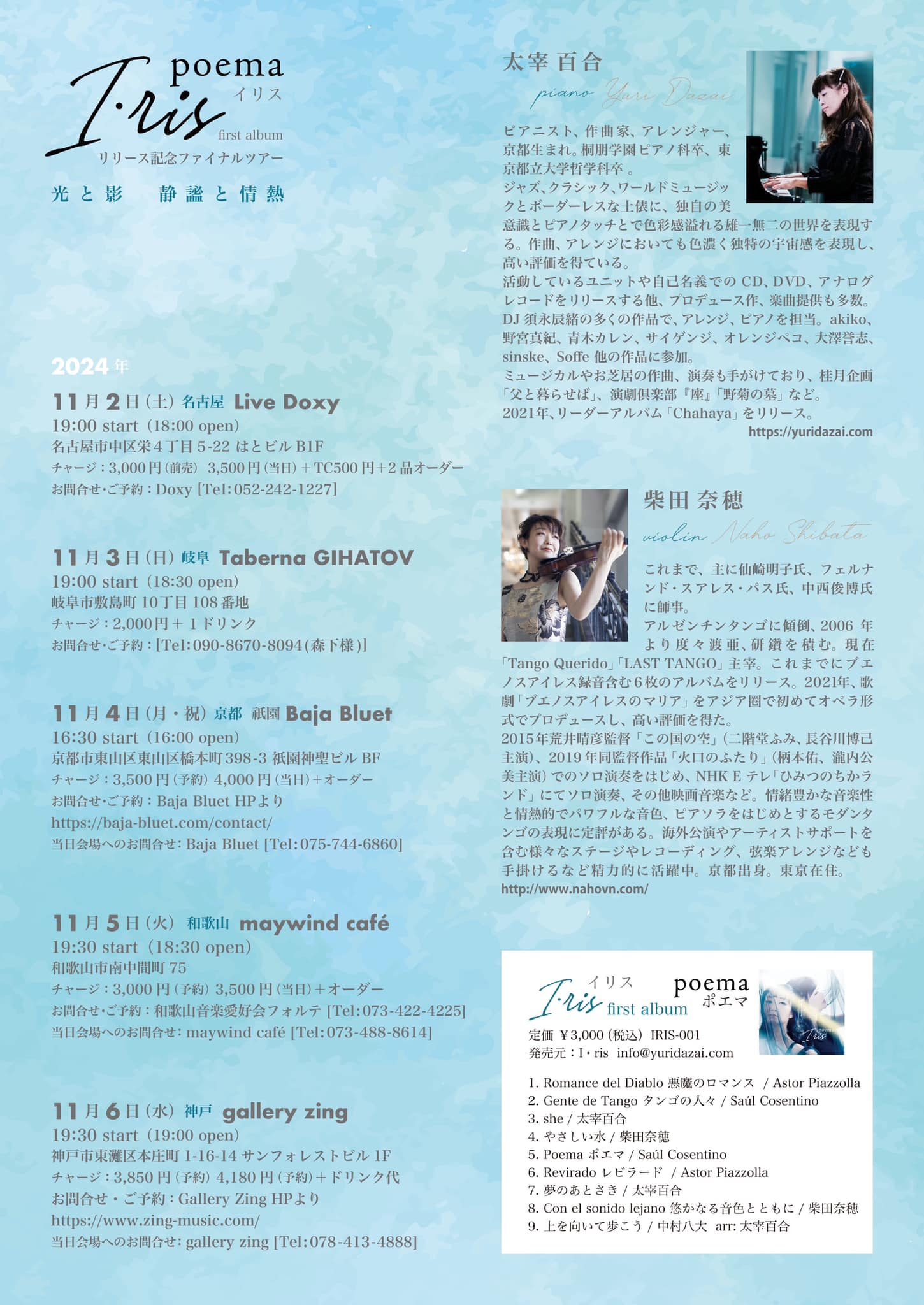 I・ris (イリス) [ 太宰百合(pf) × 柴田奈穂(vl) ]