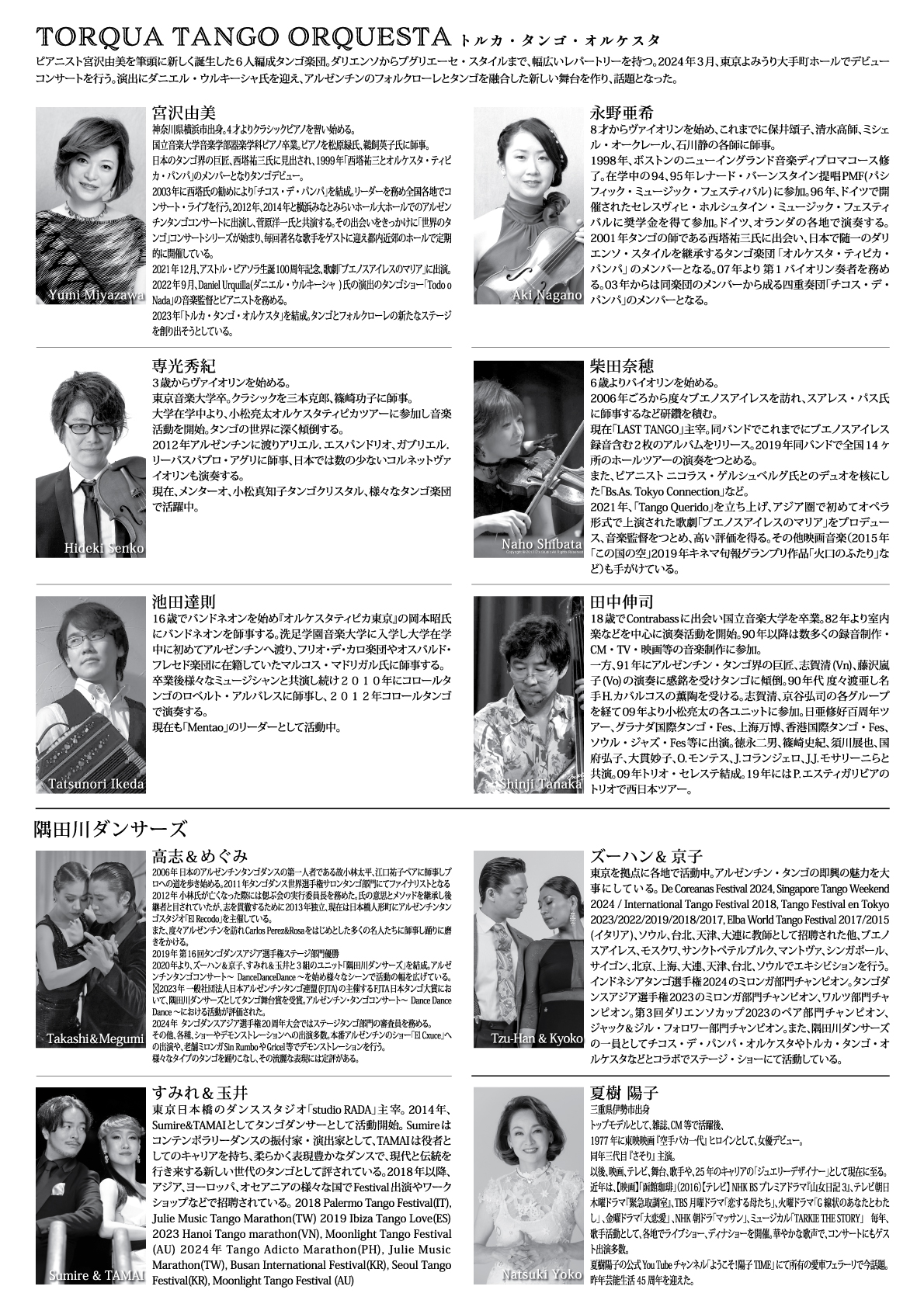 ダンス:Daniel Urquilla & Mihoko Sakata(ダニエル・ウルキーシャ&坂田美帆子)、佐藤洋介、脇坂美帆、Nazarenas (ナザレナス[橋立暁子、山内希世、小林芽以])